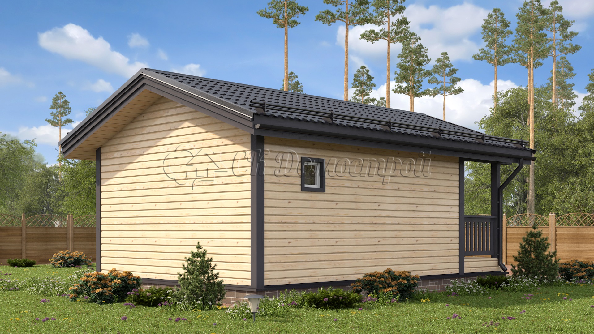 Отделка: имитация бруса 20х140 мм камерной сушки (горизонтально)