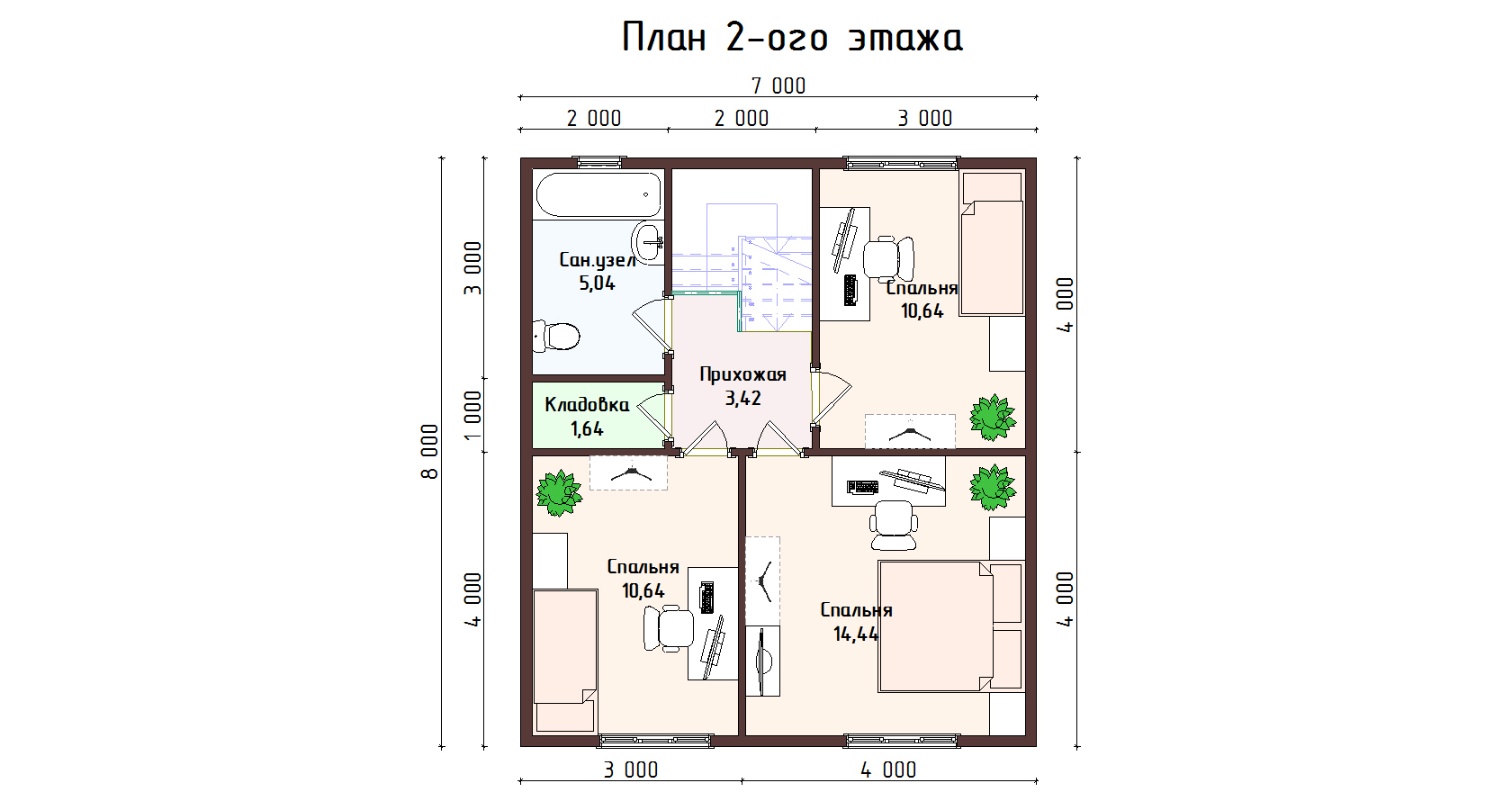 Размер коттеджа 7х8 метра, а общая жилая площадь составляет 118 метров квадратных.