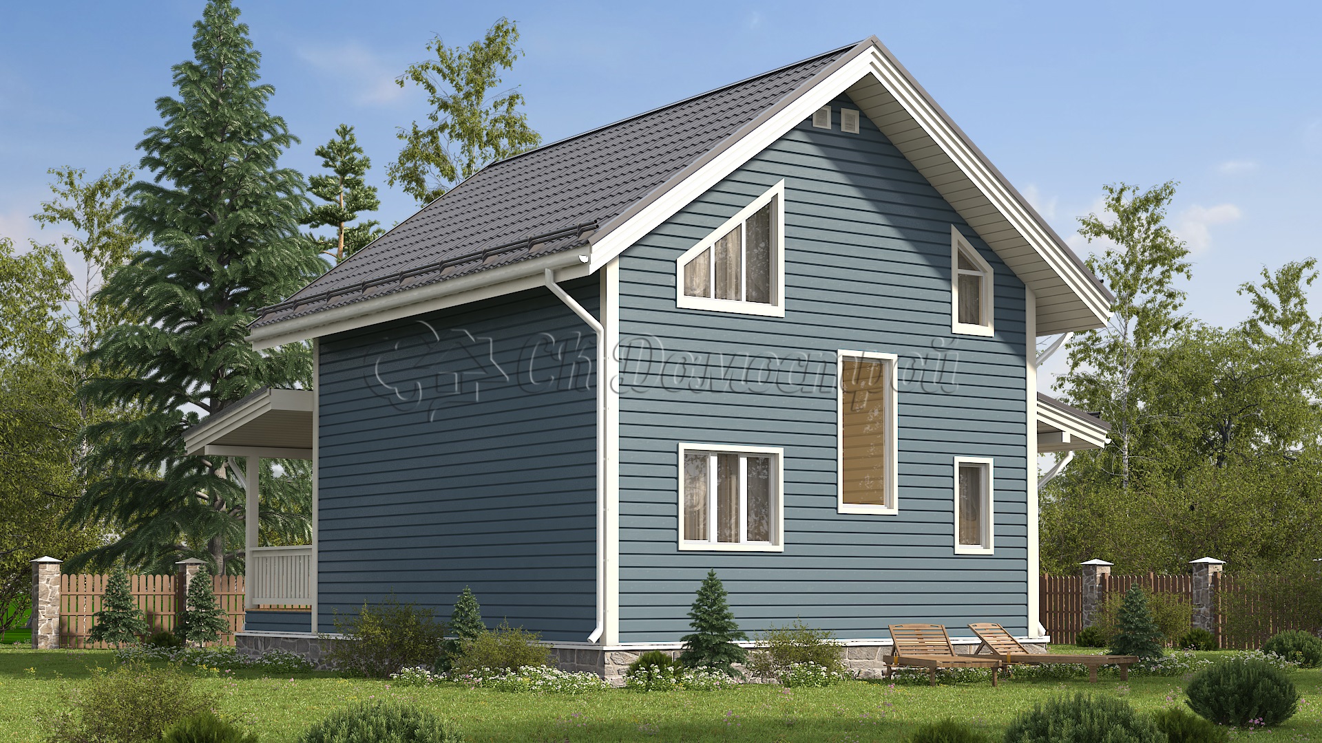 Каркасный дом «Федотов» — это строение среднего размера, идеально подходящее для семьи, состоящей из 3-4 человек. Если заказать утепление, то в этом коттедже можно жить круглогодично с большим комфортом.