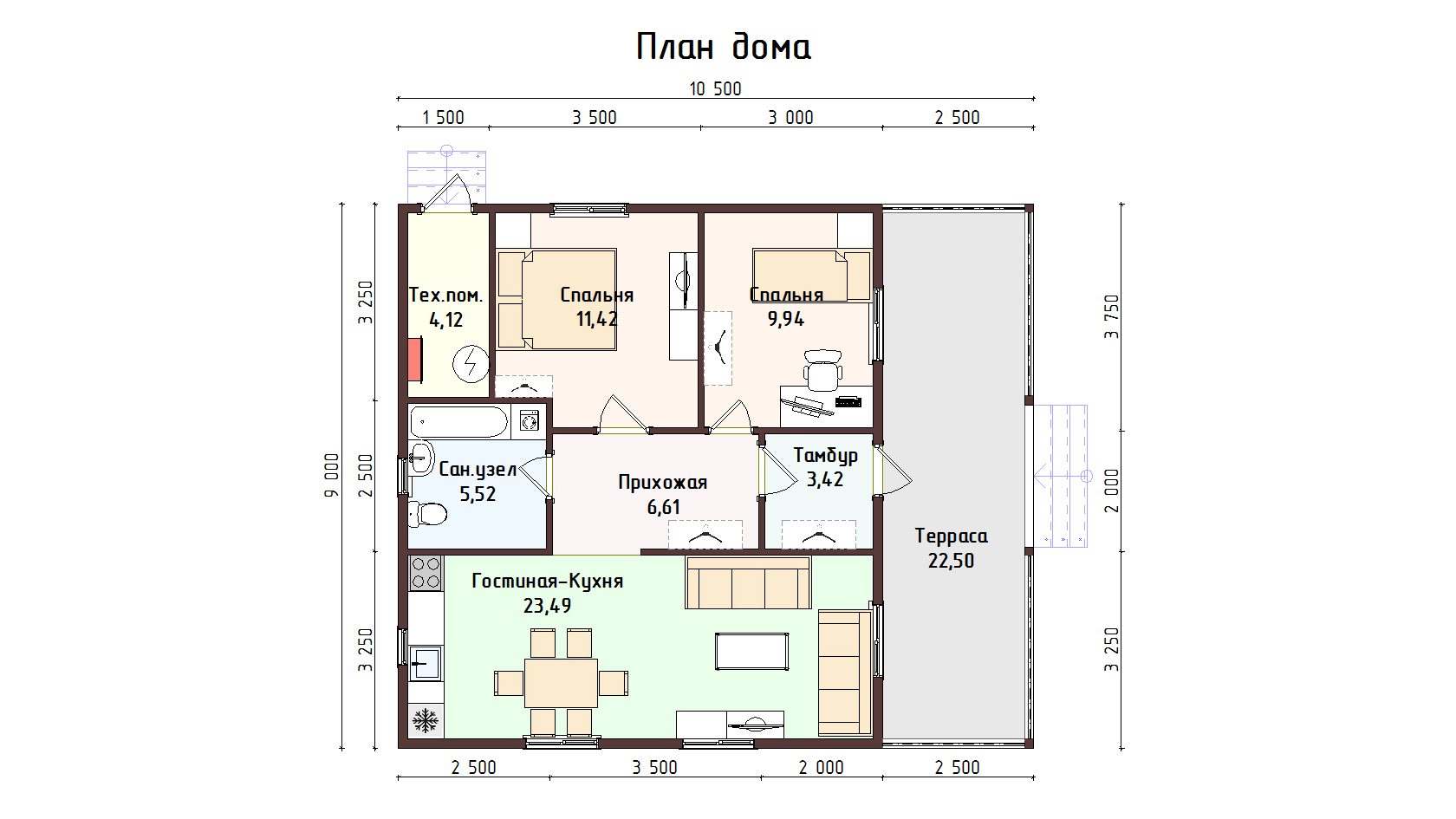 9х10,5 м