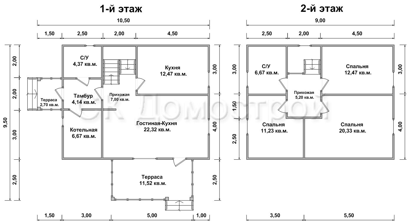 Размер дома 7х9 метра, а общая жилая площадь составляет 122 квадратных метра.