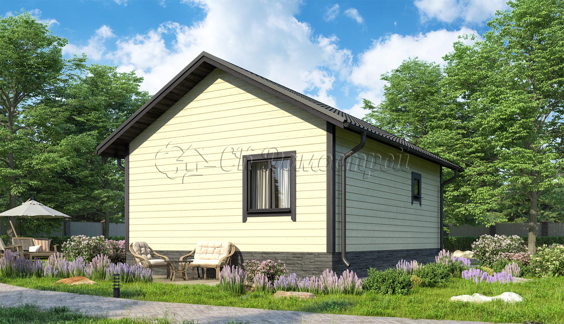 Отделка: имитация бруса 20х140 мм камерной сушки (горизонтально)