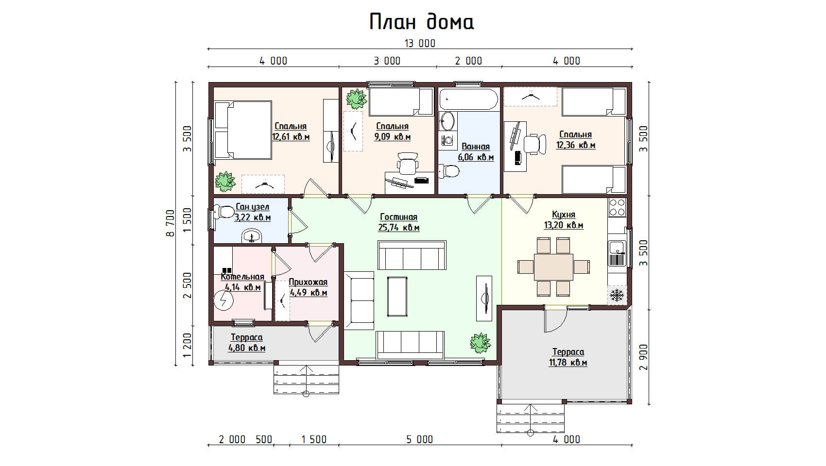 8,7х13 м