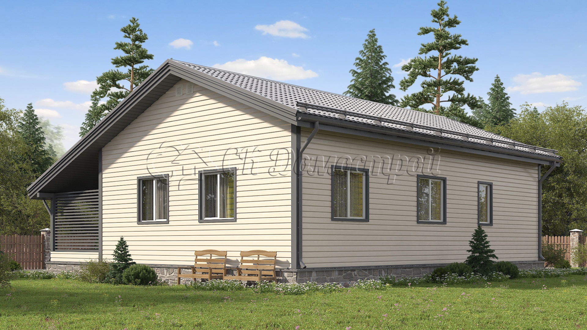 «Архипов»- лучший проект одноэтажного дома 10х12 с отличной планировкой, который имеется в наличии в компании СК Домострой. Несмотря на то, что коттедж имеет лишь один этаж, этого более чем достаточно для удобного проживания целой семьи.